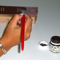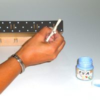 Em seguida, com o auxílio do pincel 484-20, passe duas camadas da tinta PVA lilás médio intercalando com tempos de secagem.