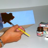 Em seguida, aplique duas camada de tinta PVA café em toda a tampa da caixa.